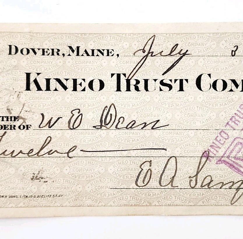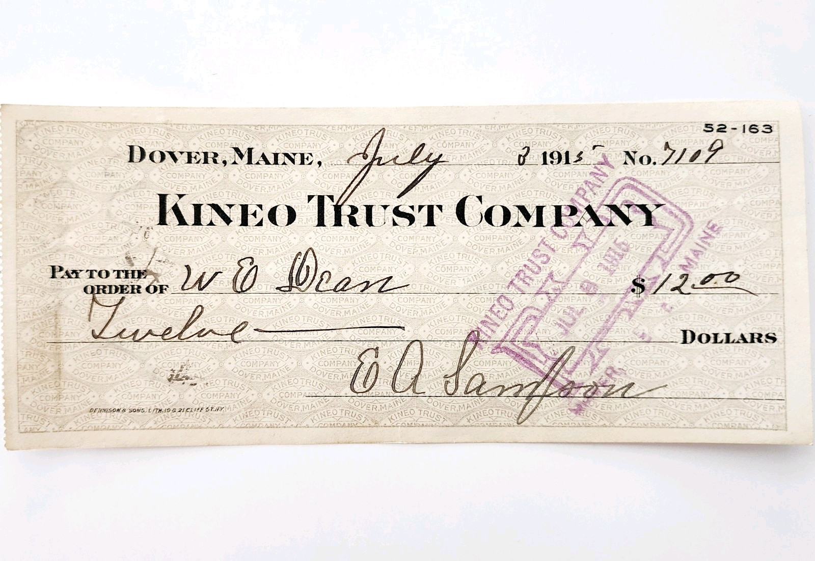 1915 Kineo Trust Company Bank Check E.A. Sampson Dover Maine Signed 7109 CHX13