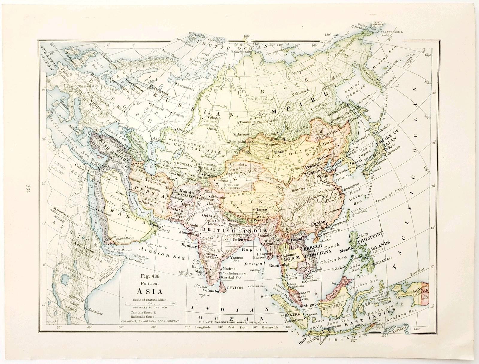 1916 Map Asia Russian Empire China India Persia Mongolia Political DWSS9