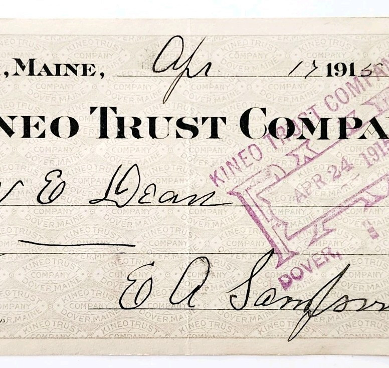 1915 Kineo Trust Company Bank Check E.A. and 32 similar items