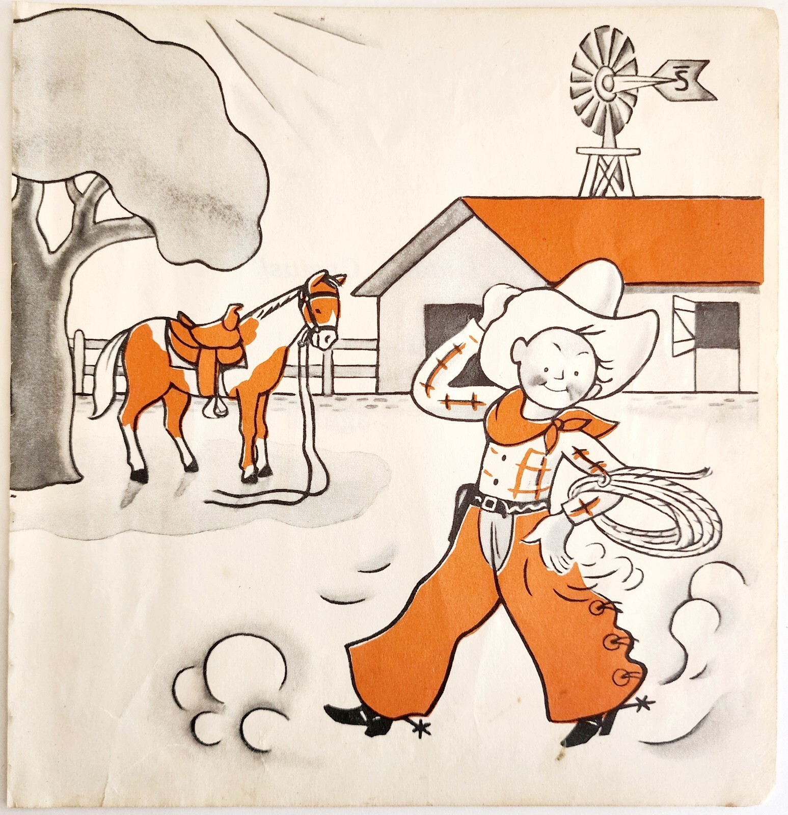 1955 Cowboy Small Horse Illustration Book Plate Print Lenski Vintage DWH5B