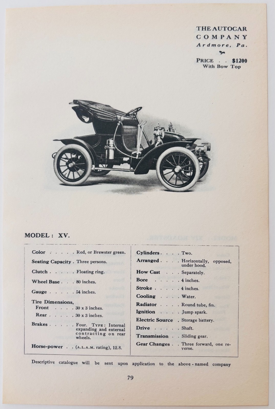 1908 Autocar Company Model XV Vehicle Catalog Advertisement Automobilia F17M1
