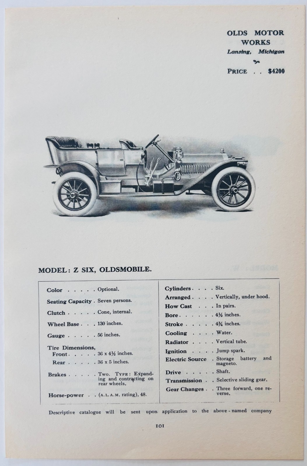 1908 Olds Motor Works Model Z Six Catalog and 41 similar items