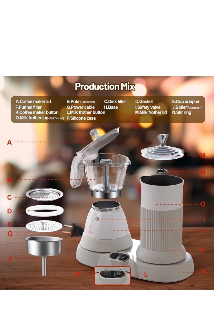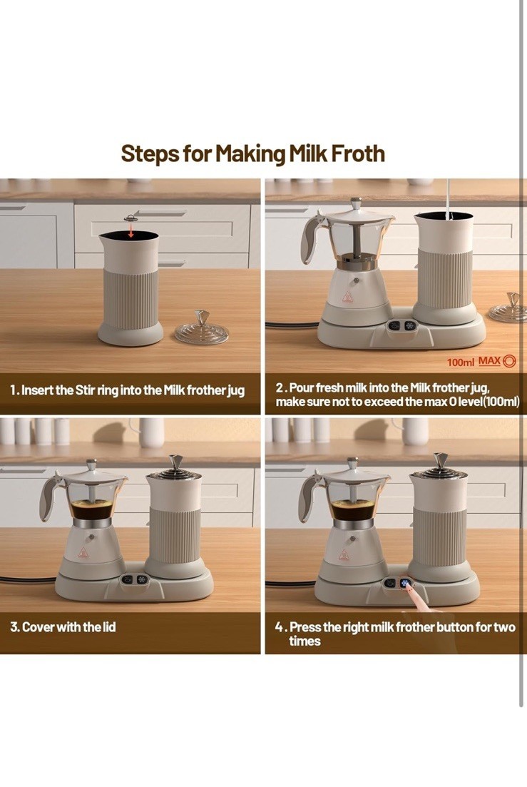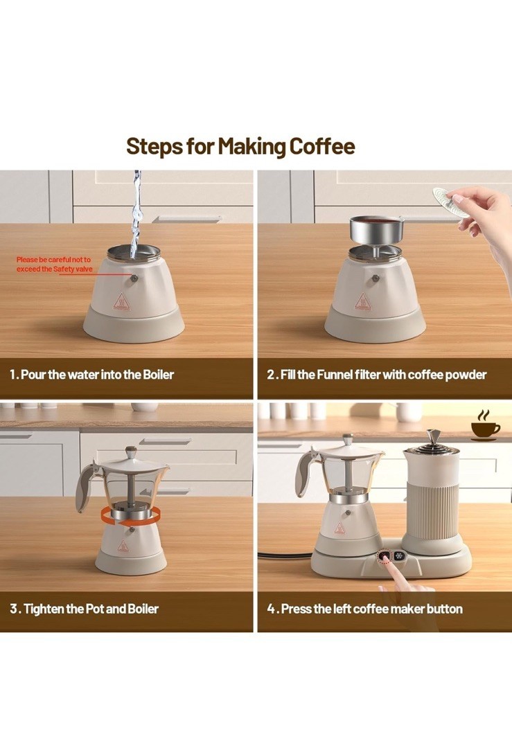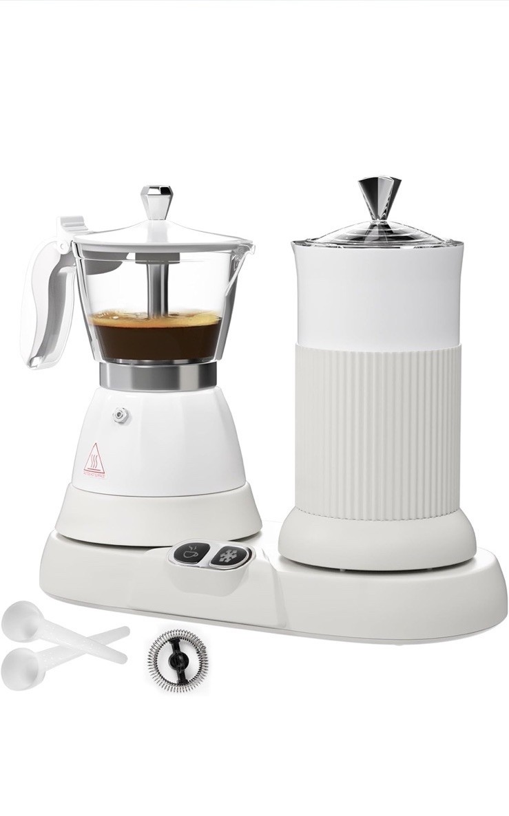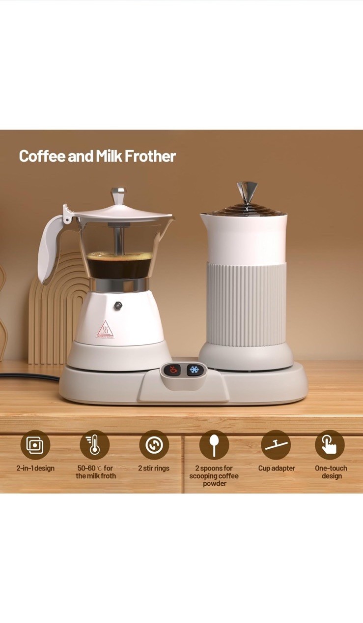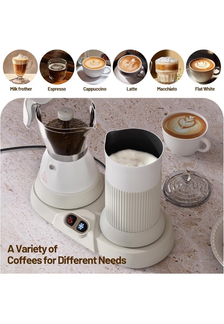 Electric Espresso Machine with Milk Frother 2 in 1 Efficient Moka Pot White NEW!