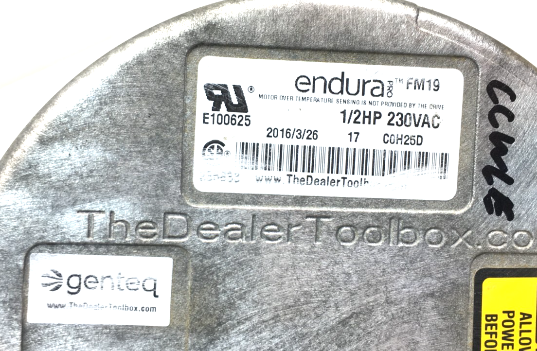 Genteq Endura FM19 Module ONLY 1/2HP 230V CCW LE rotation used #W626