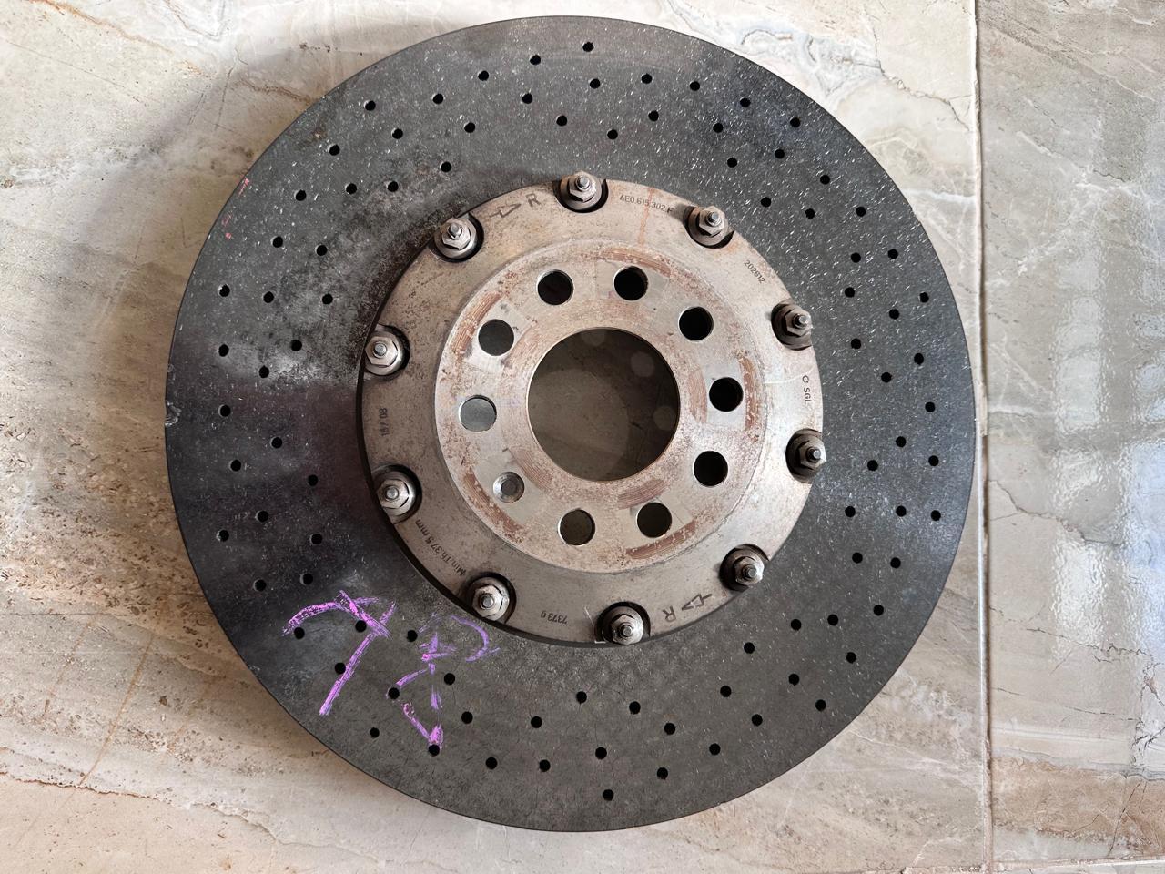 Complete OEM Audi S8 (D3, 2007–2009, 5.2L V10) Carbon Ceramic Brake Kit – rare and highly sought-after factory setup.