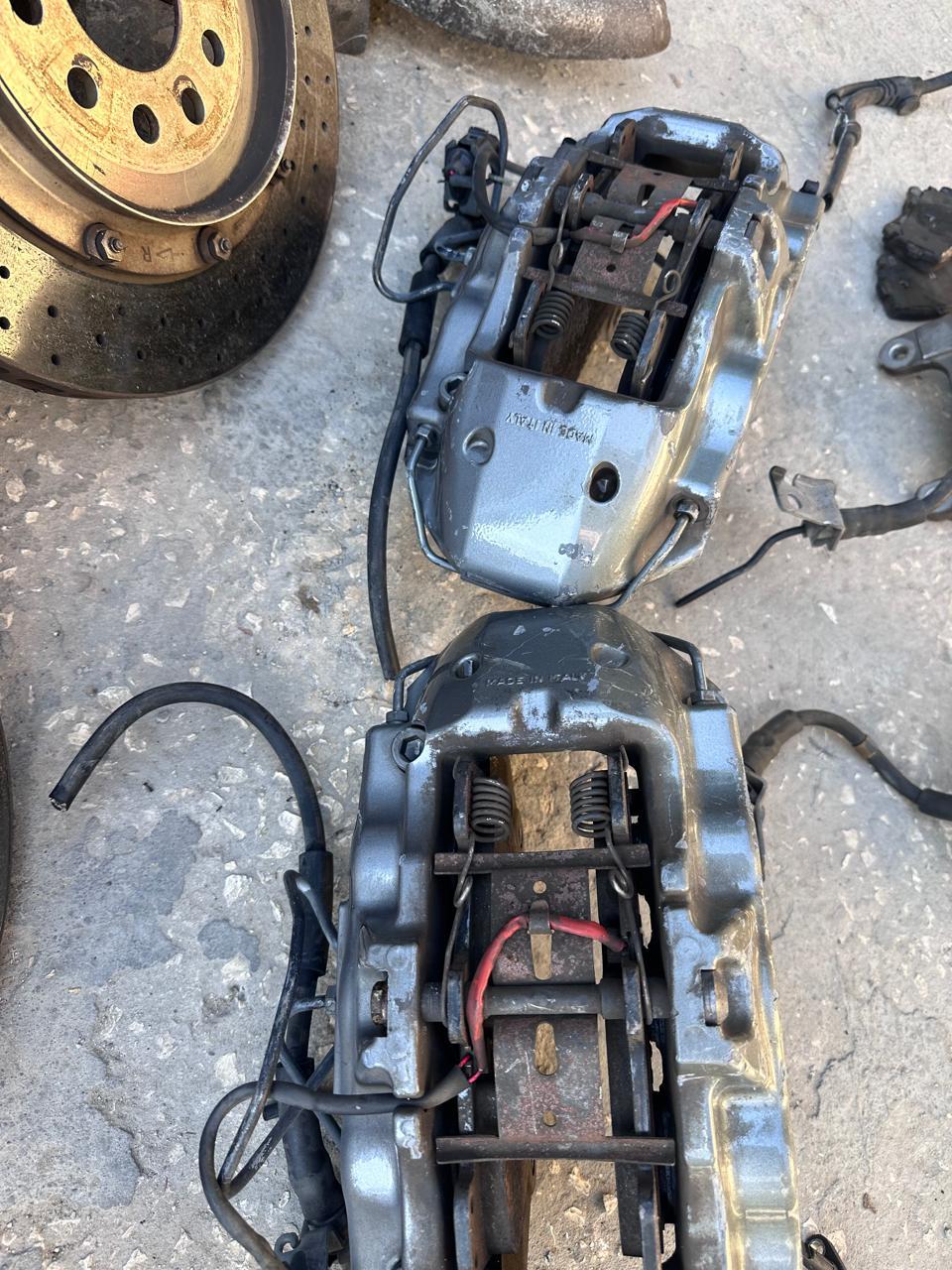 2x OEM Brembo 6-Piston Front Calipers (P/N: 208928011A) + Pads (60% life)