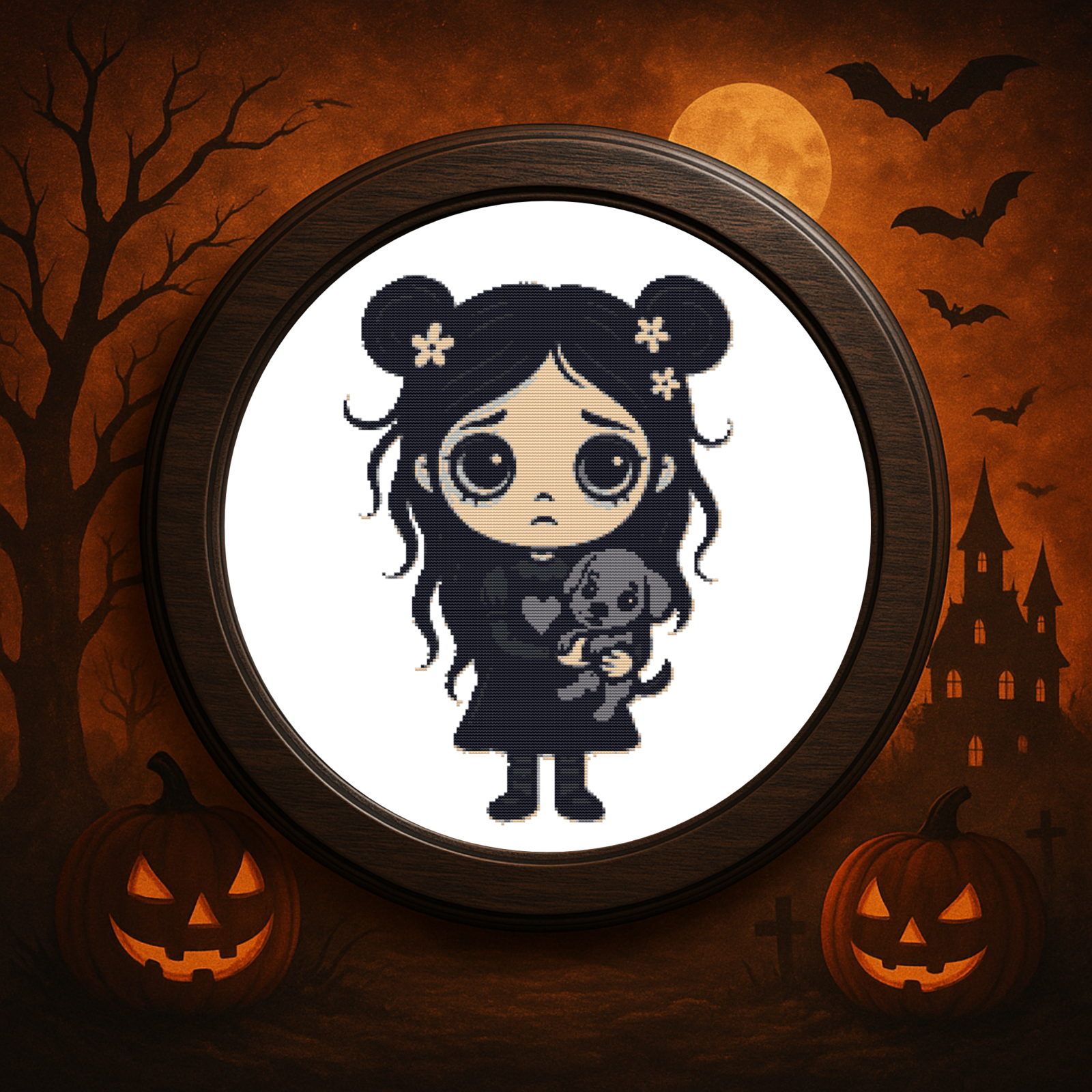 Girl in black clothes for Halloween - Cross stitch pattern PDF