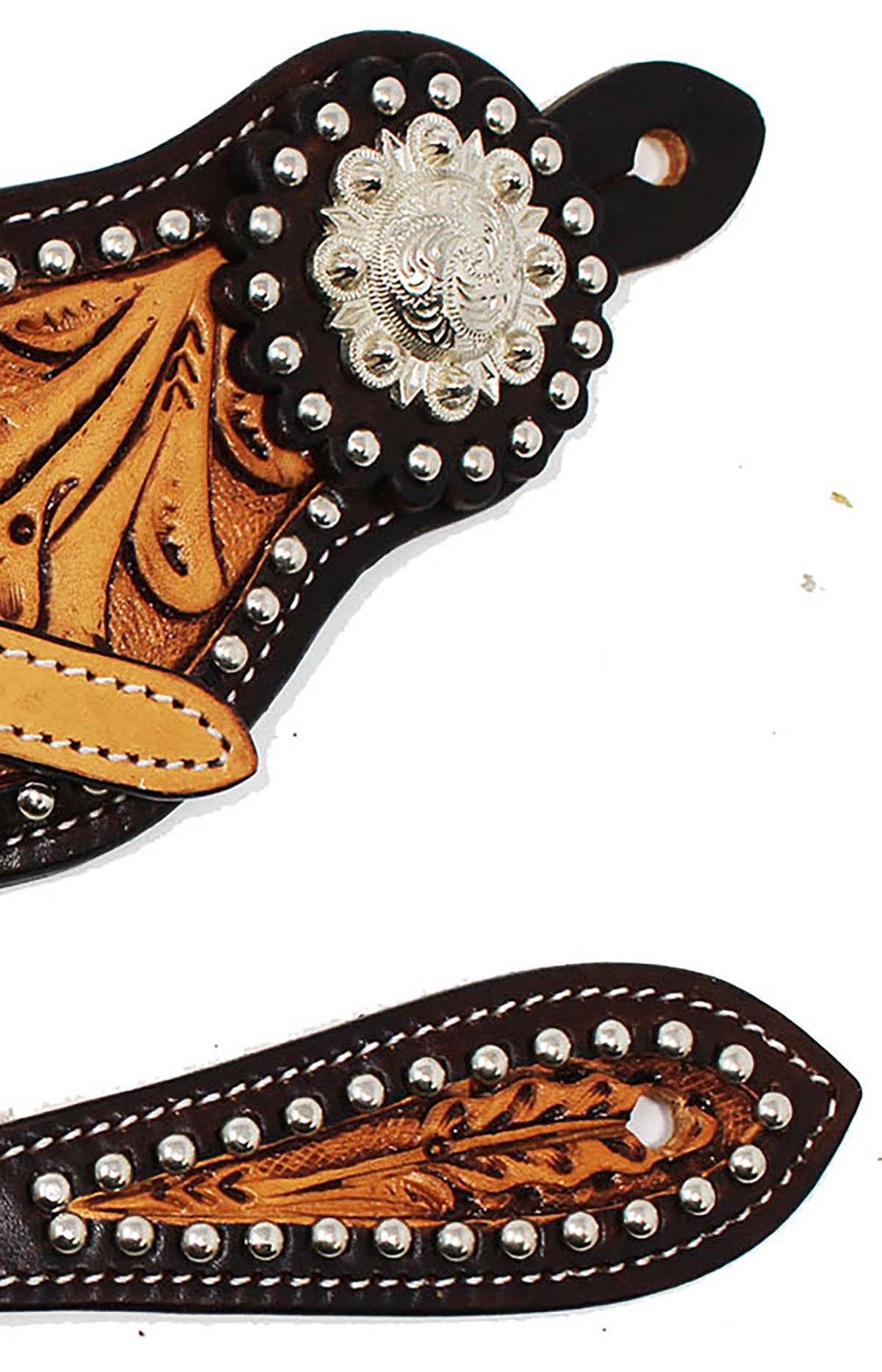 Horse Western Tooled Leather Studded Cowboy Boots Spur Straps 74RT01