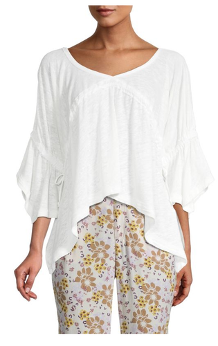 Ruched drawstring detail tames the relaxed flowy silhouette of this top and elevates its style. V-neck Three-quarter sleeves Pullover style Drawstrings detail Handkerchief hem Linen/cotton Hand wash Imported SIZE FIT About 21 from shoulder to hem Model shown is 510 (177cm) wearing US size Small. Women Rtw Swim Outerwear - W Trend Collections Saks Off 5th Barneys Warehouse. Free People. Color: Ethereal. Size: S.