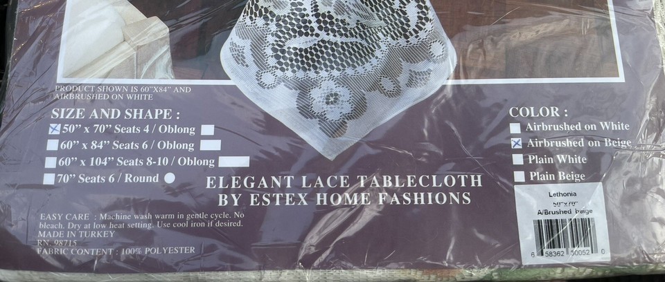 VTG ESTEX BEIGE TABLECLOTH AIRBRUSHED COLOR FLOWERS & LACE 50” X 70” TURKEY NEW