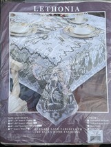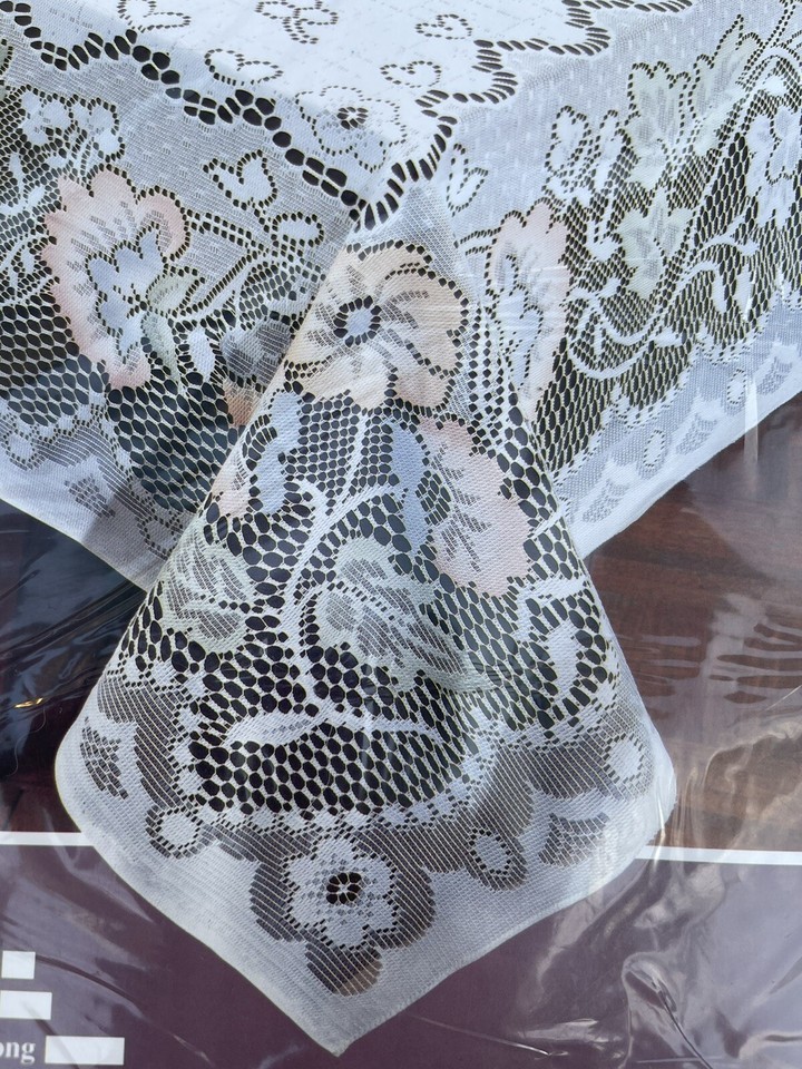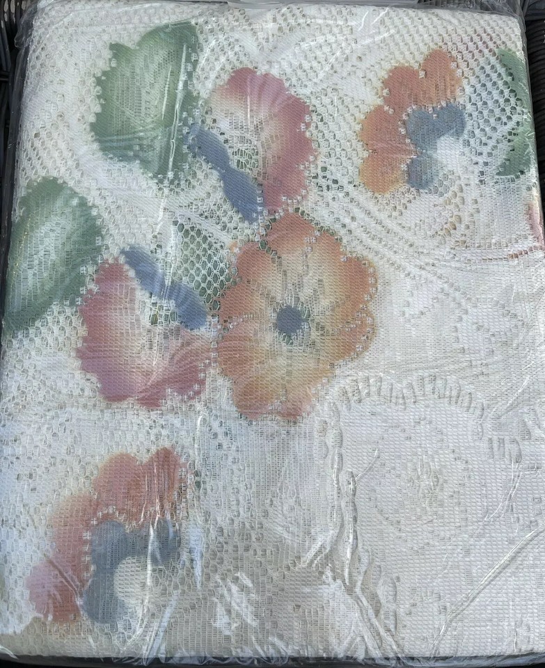 NEW VINTAGE BEIGE TABLECLOTH AIRBRUSHED COLOR FLOWERS LACE 50? X 70? MADE IN TURKEY.