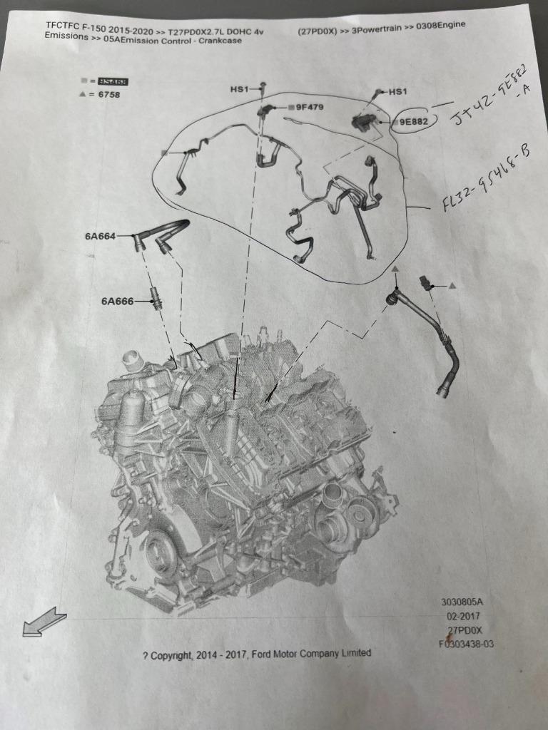Ford F150 2.7L 15-20 EGR Solenoid Valve Air Pressure Sensor System F2GZ9E882A