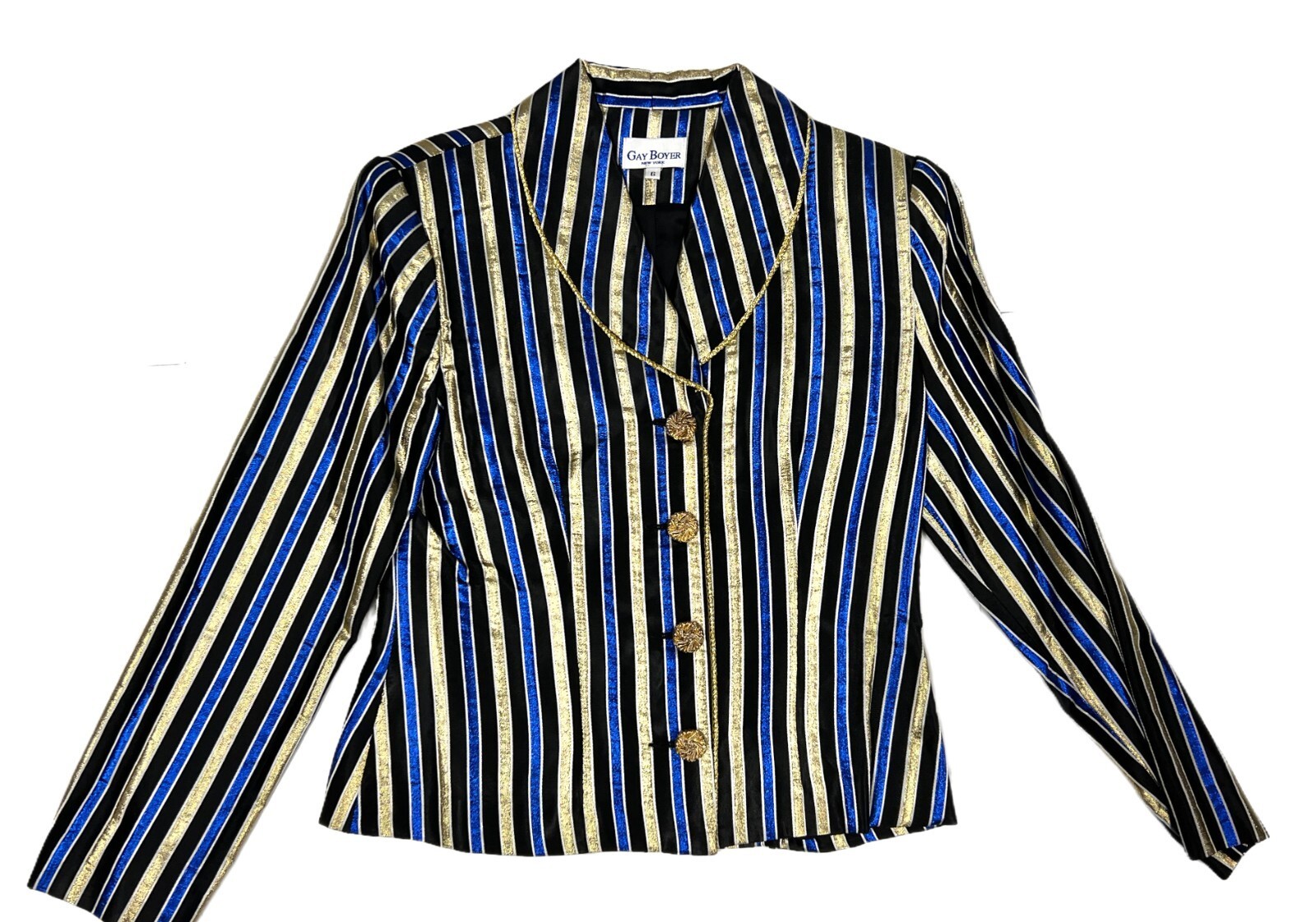 Super Unique, One Of A Kind Gay Boyer Blazer, Fully Lined, Amazing Vibrant Colors In Black, Cobalt Or Sapphire Blue And Bright Metallic Gold.