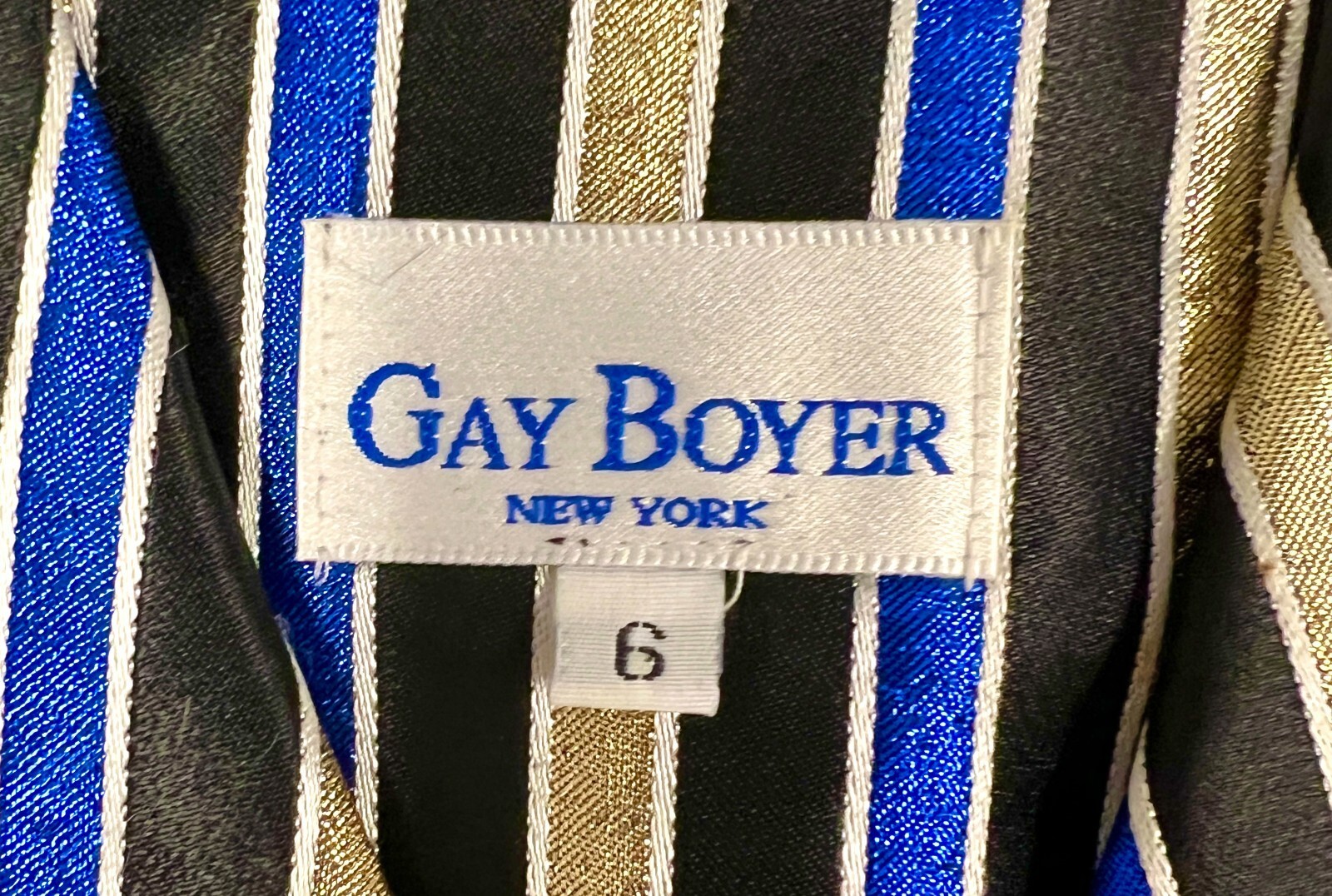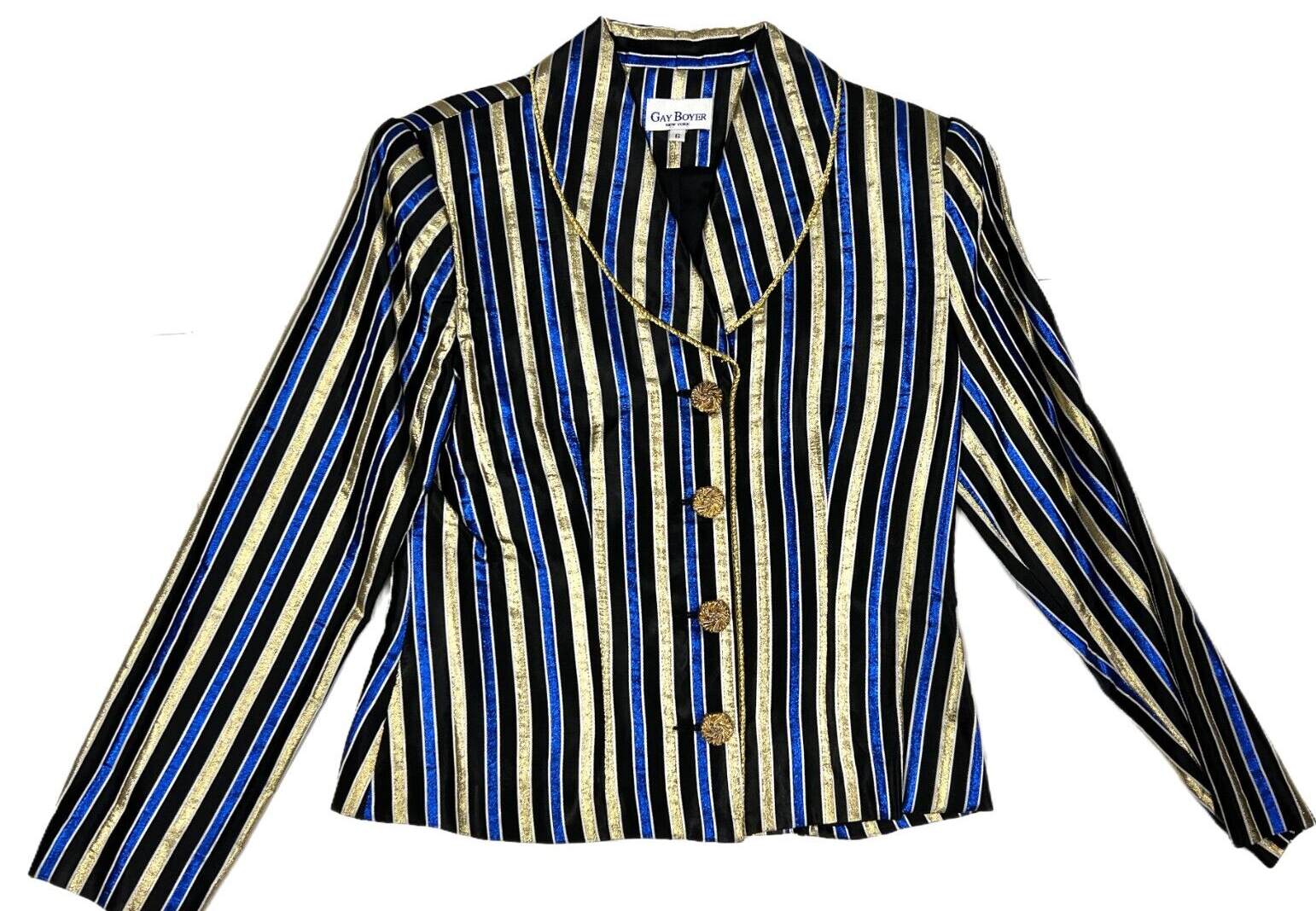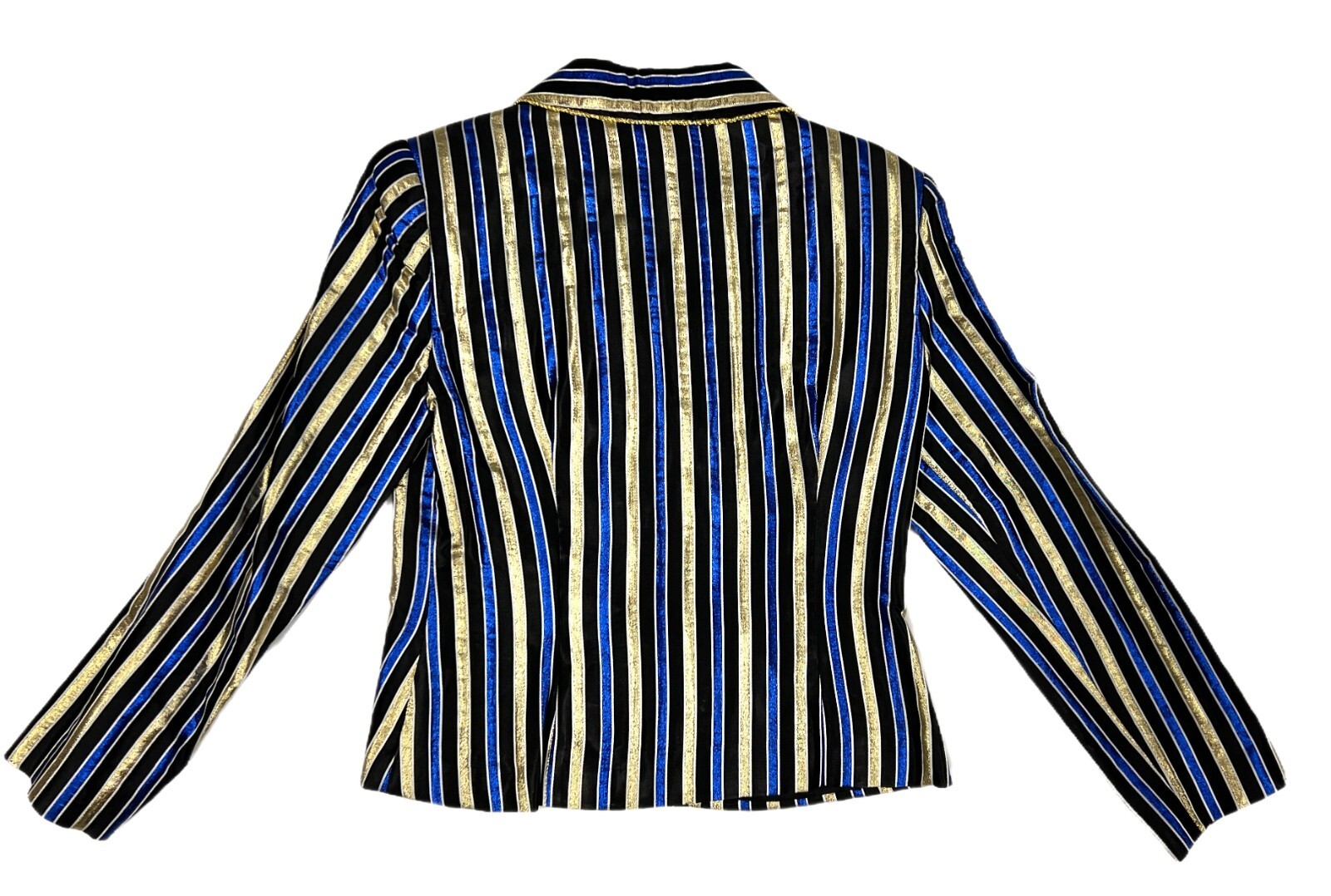 GAY BOYER NEW YORK VINTAGE BLAZER JACKET Gold Blue Black Metallic Sz 6 80s