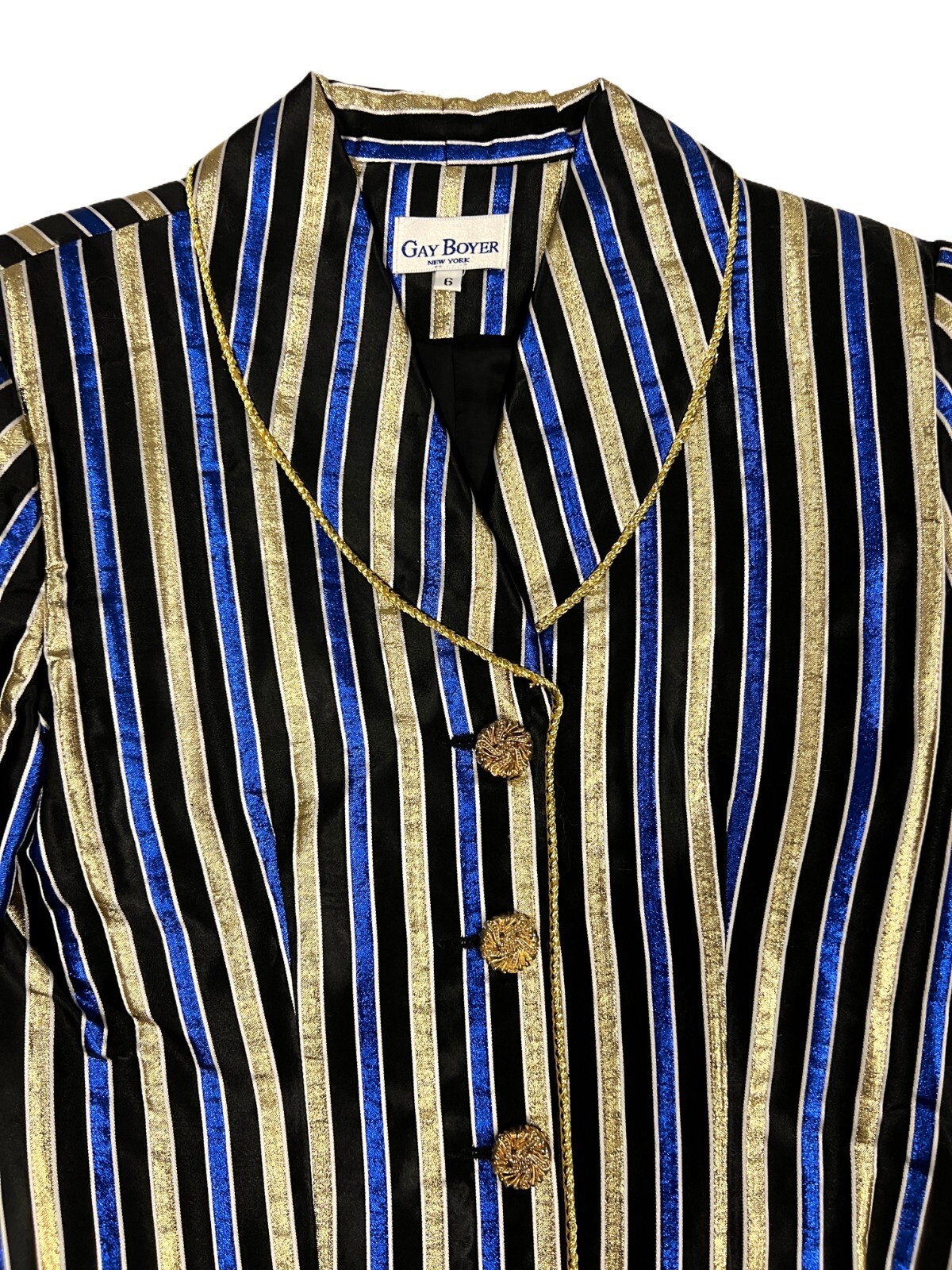 Gay Boyer New York Vintage Blazer Jacket Gold Blue Black Metallic Sz 6 80s