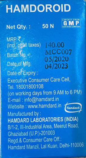 Hamdard Hamdoroid is a Unani formulation for effective double-line management of piles. It also relieves pain and itching, reduces swelling, stops heavy bleeding, reduces swelling of haemorrhoids and heals wounds faster.