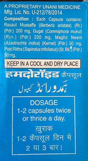 Hamdoroid Capsule for Haemorrhoid Piles pain Relieve itching herbal 50 capsule