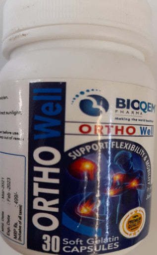 Bioqem Pharma Ortho Well Soft Gelatin Capsule is an ayurvedic herbo-mineral dietary supplement. It is beneficial in joint and muscle pain, back pain, sciatica pain and inflammatoryconditions