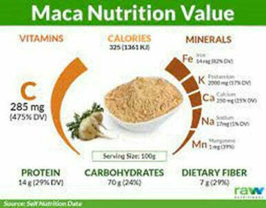 Packed with Nutrients: Maca Root Powder is a good source of vitamins (such as vitamin C, B vitamins), minerals (such as iron, calcium, potassium), amino acids, and antioxidants.