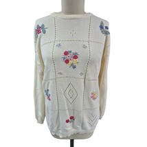 VTG 90s 3D Tulchan Cottagecore Cream Floral Embroidered Tunic Sweater M Cotton