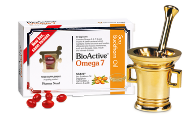 Omega 7 is a nutritional supplement that is produced using the berry and seed of the Sea buckthorn plant. This shrub, originating from the Himalayas, is rich in Omega 7 fatty acid, including palmitoleic acid and vaccenic acid. The vitamin A that is found in Omega 7 contributes to the maintenance of normal skin, vision and mucous membranes.