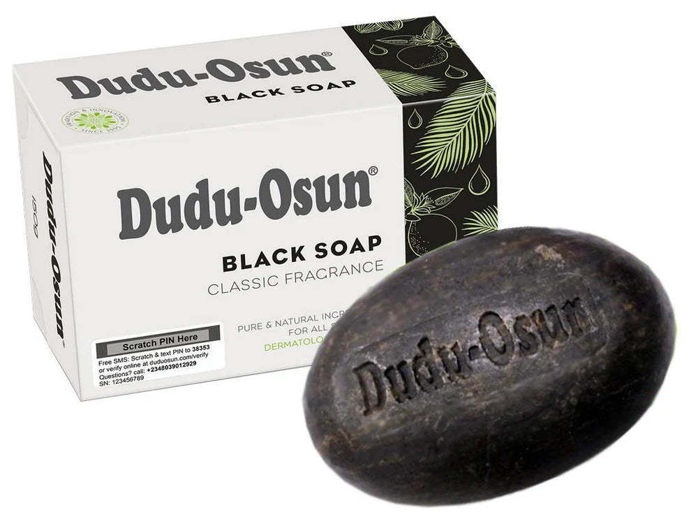 The Dudu-Osun Black Soap (150g) is a traditional African black soap originating from Nigeria, renowned for its natural ingredients and numerous skincare benefits. Crafted using a blend of plant-based components, it offers a holistic approach to skin health.