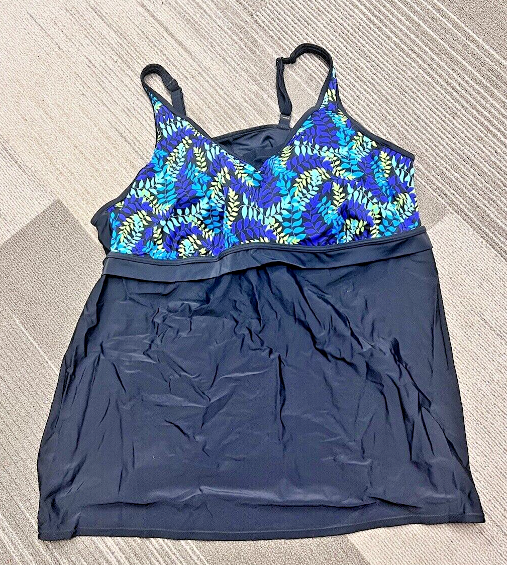 Catherines 48DD Swimming Top Long Black w Bright Leaf Top Real Bra Top