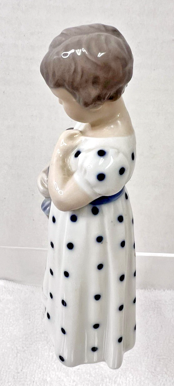 Royal Copenhagen Girl With Doll Figurine 5.5" Blue Spotted Dress