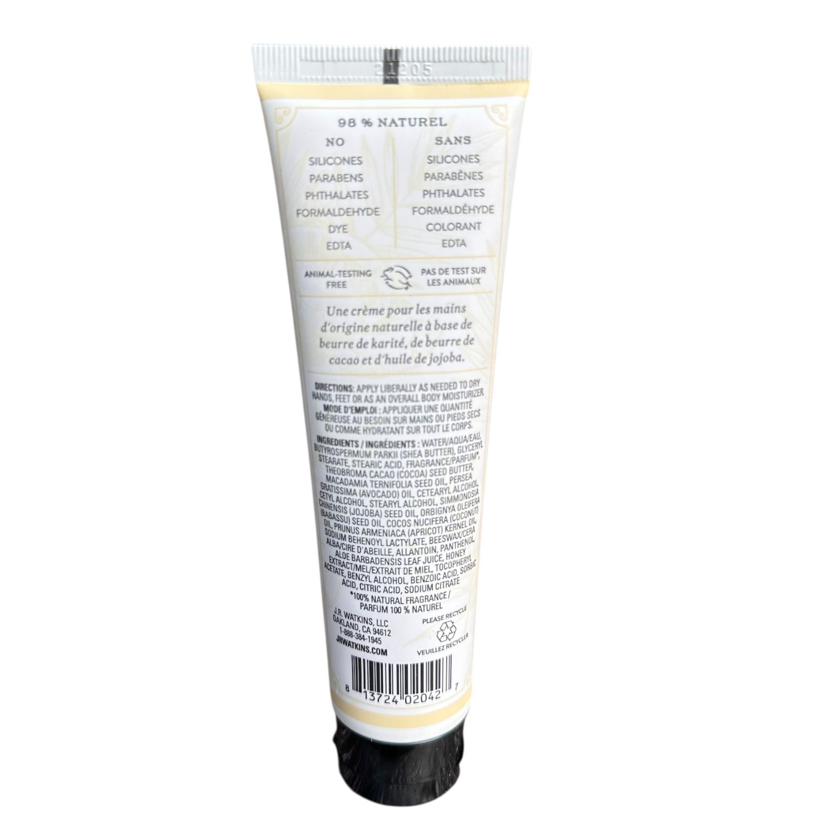 J.R. Watkins Coconut Milk & Honey Shea Butter Hand Cream 3.3 oz