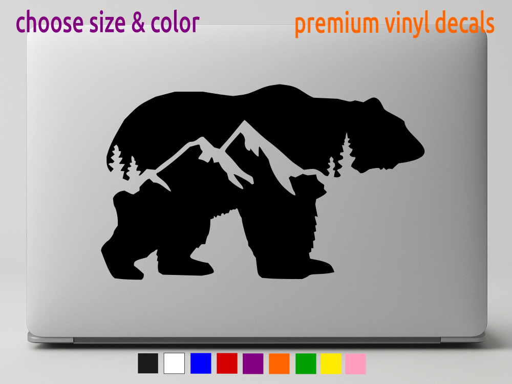 BEAR AND MOUNTAINS Nature Wildlife Sticker Vinyl Decal CHOOSE SIZE COLOR