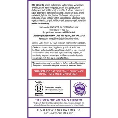 Expiration Date of 11/2026 ? 55-PLUS WOMEN'S MULTIVITAMINS: Absorb the natural goodness of whole-food fermented nutrients formulated for your body to recognize as food ? ENERGY IMMUNE SUPPORT: Designed to support women's needs after 50, including cellular energy metabolism, brain health, cardiovascular healthy blood pressure support, and immune health,* with Astaxanthin. IRON-FREE! ? ONE DAILY: Can be taken any time of day?complete fermented multivitamin is easy to digest and gentle even on an empty stomach. No nausea ? THE FERMENTED ADVANTAGE: New Chapter ferments key vitamins and minerals with probiotics and formulates our blends for optimal absorption ? Made with Certified Organic Vegetables Herbs, Non-GMO Project Verified, 100% Vegetarian, Certified Kosher, Certified Gluten-Free by NSF, No Synthetic Fillers, Iron Free, Packaging may vary