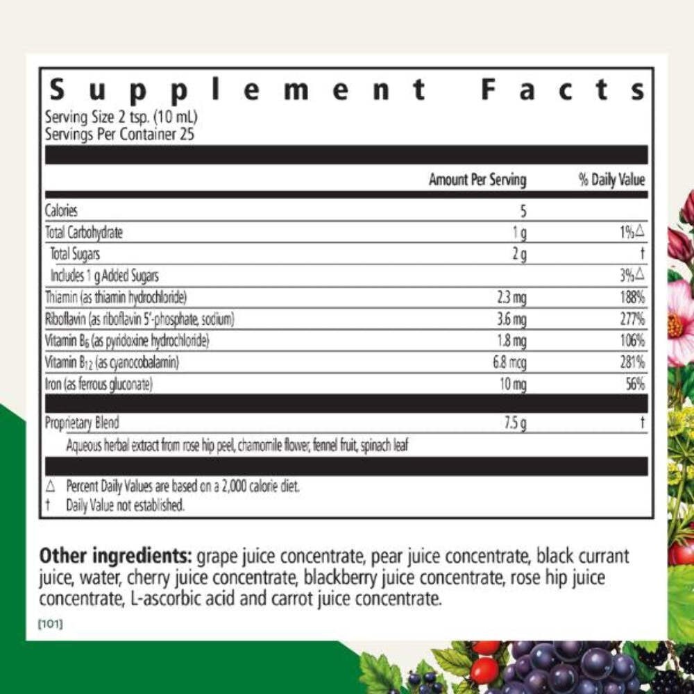 Expiration Date 12/2027 ? Vegan Iron Supplement: Floravital Iron and Vitamins provides 10mg of liquid iron per serving, aiding in maintaining healthy iron levels for energy support* ? Health Benefits: This dietary supplement includes B vitamins and vitamin C to support the body's natural iron absorption and digestive comfort* ? Gentle Formulation: A vegan iron supplement is enriched with herbal extracts for a natural and gentle approach to wellness without stomach upset* ? Made without Preservatives: A vegan, non-GMO, and free from gluten, yeast, alcohol, and artificial additives, supporting health and wellness* ? About Salus: For over 100 years, Salus has been producing high-quality health and wellness products based on traditional herbal wisdom and scientific expertise to help people live their best life