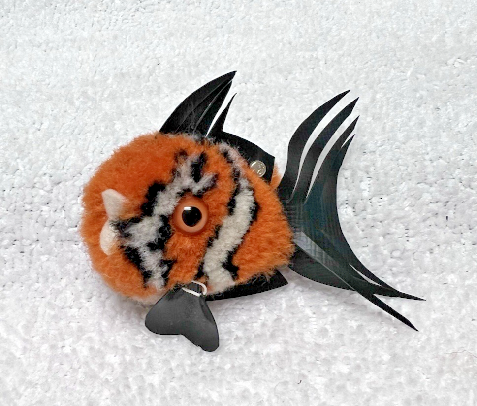 Vintage Steiff WOOLEN Poms Orange Black Gold Angel Fish w Button