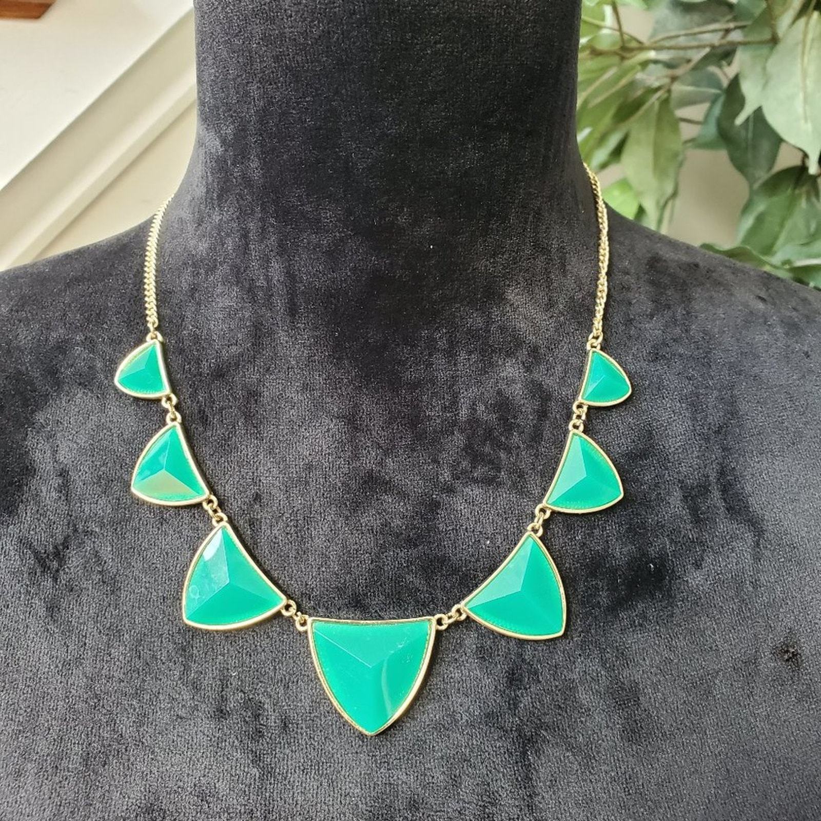 House of Harlow Inspired Women's Green Pyramid Station Fashion Jewelry Necklace