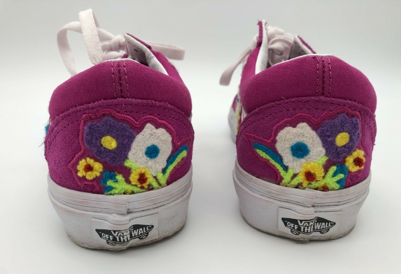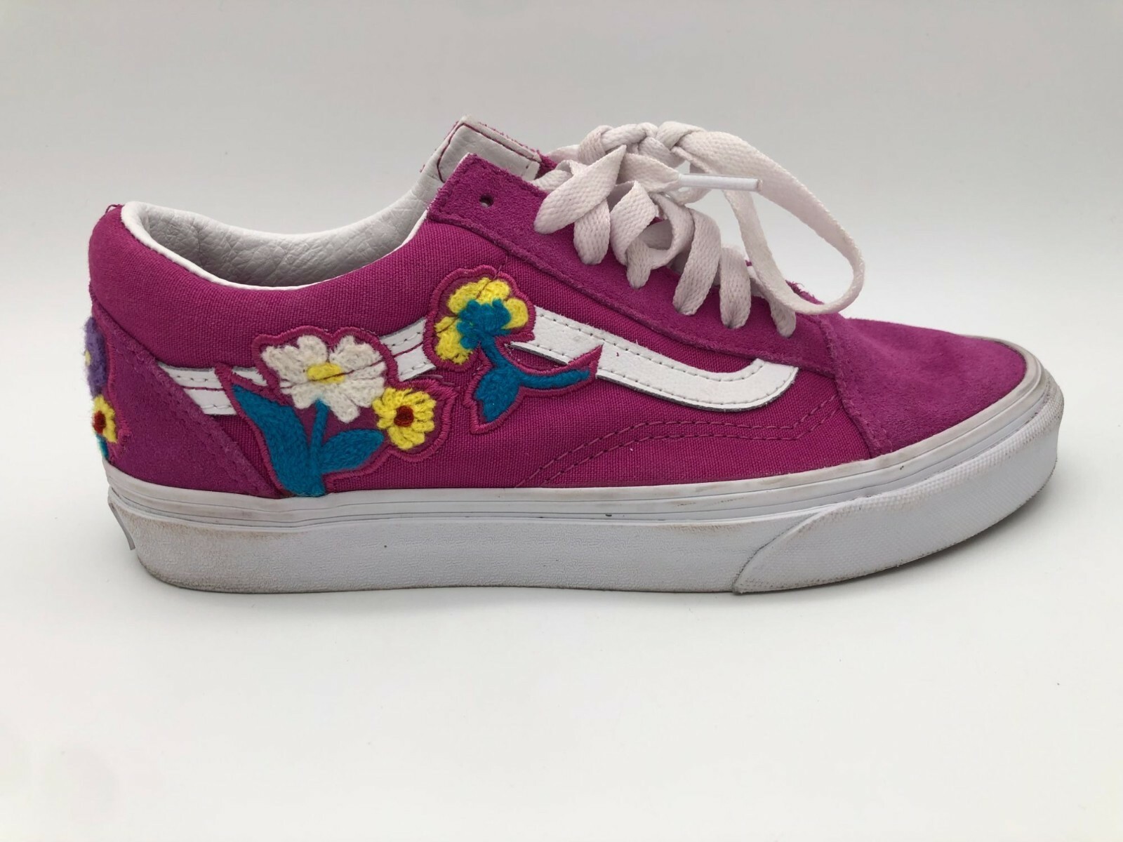 Vans Old Skool Floral Chenille Sneakers Fuchsia Embroidered Men's 5.5 Women's 7
