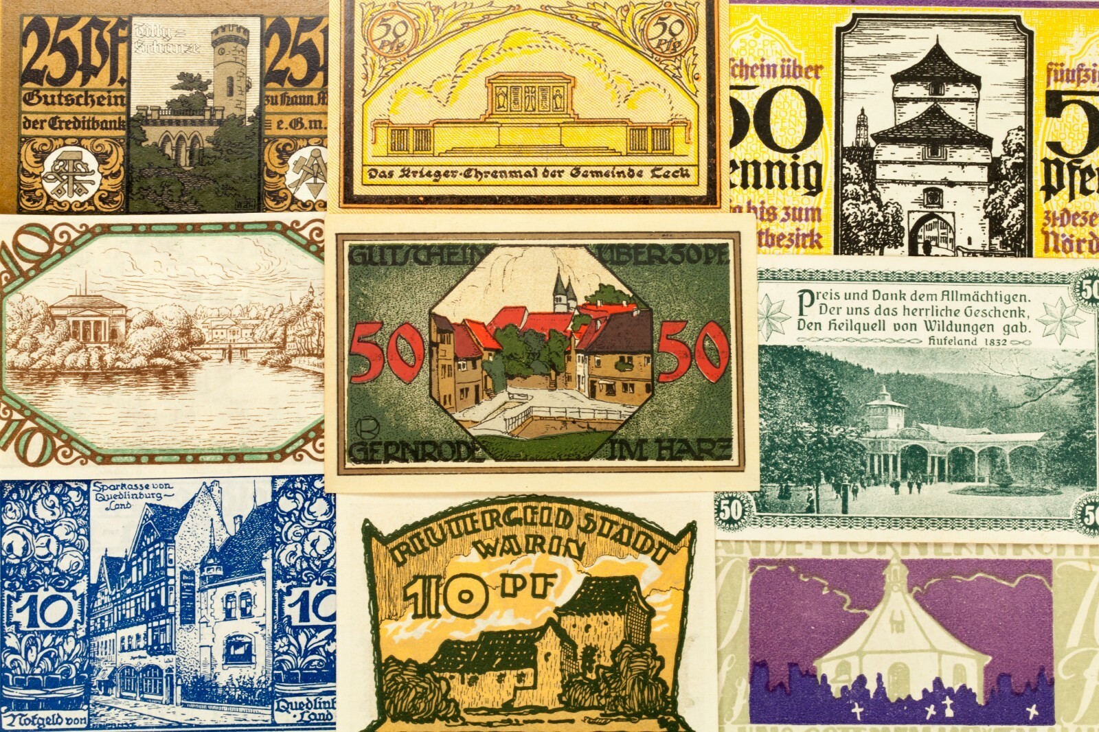 Alemania de 1920 Notgeld (dinero de emergencia) 25pc - Mal Wildungen, Koln, Nordlingen