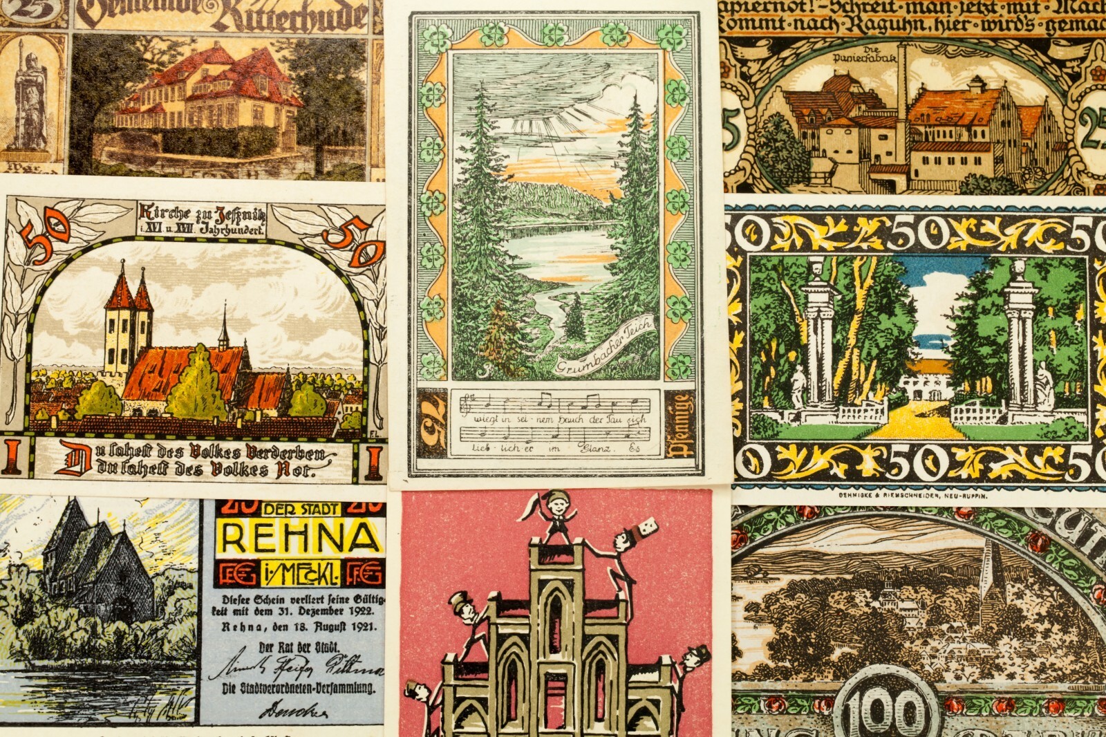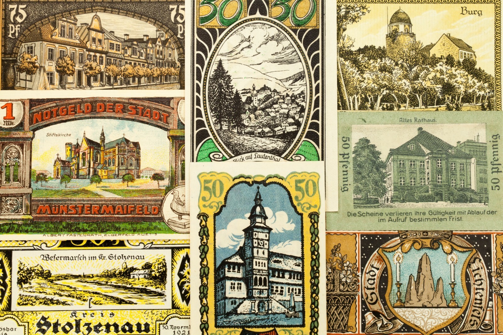 Este lote incluira 25 notas individuales de Notgeld de Alemania despues de la Primera Guerra Mundial. Todos estaran en la condicion muy fina a no circulada (VF-UNC). Valores de cara entre 5 pfennig a 5 marca. Tema de vistas a la ciudad; puntos de referencia, edificios y paisajes. No hay duplicados.