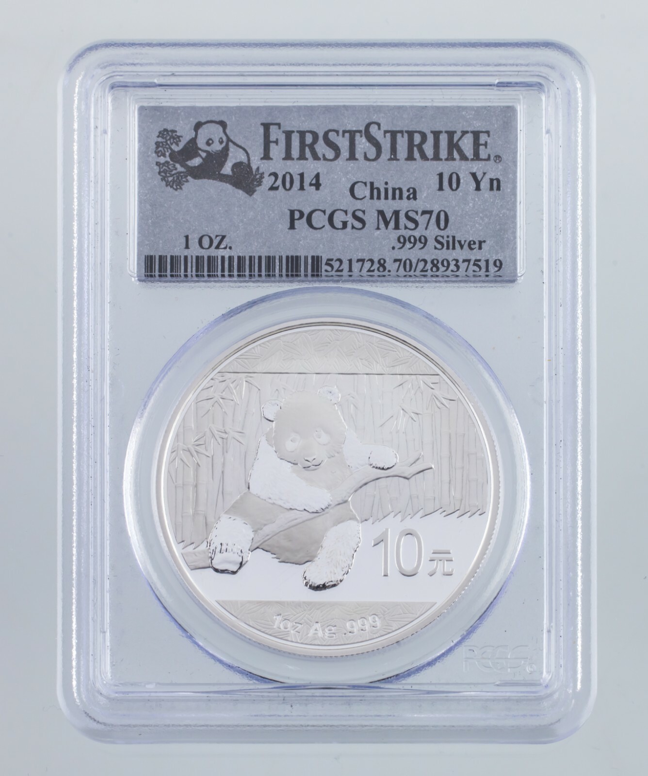 2014 China 10 Yuan Silver Panda, der von PCGs als MS-70 erster Streik bewertet wurde