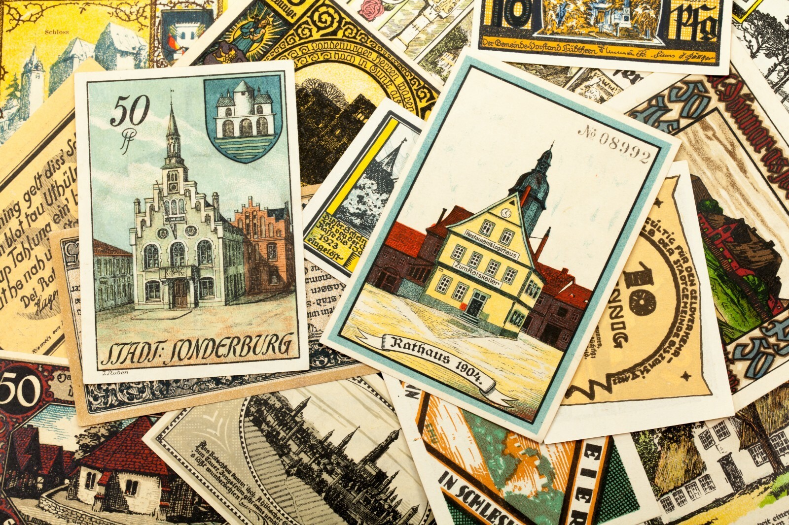 Este lote incluira 25 notas individuales de Notgeld de Alemania despues de la Primera Guerra Mundial. Todos estaran en condicion extra fina a no circulada (XF-sin). Valores de cara entre 5 pfennig a 5 marca. Tema de vistas a la ciudad; Monumentos de referencia, edificios famosos y paisajes.