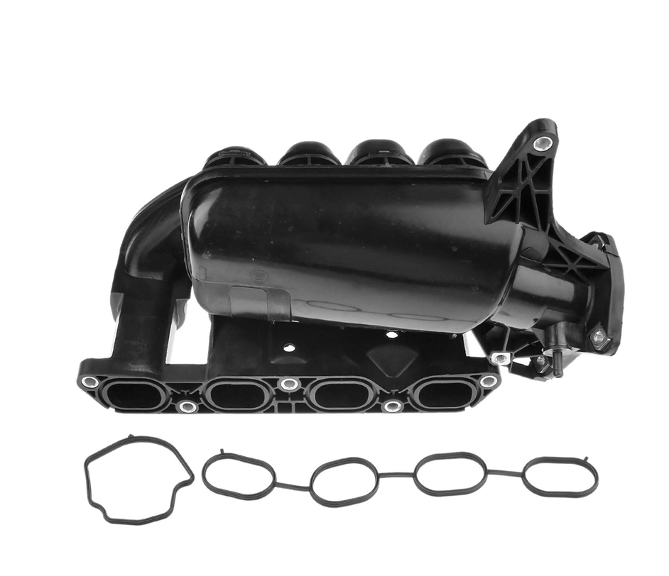 This intake manifold kit is designed for use on 2003-2006 Pontiac Vibe engines. It includes a gasket and is made of black plastic. The kit is a bolt-on type and is suitable for gasoline fuel.