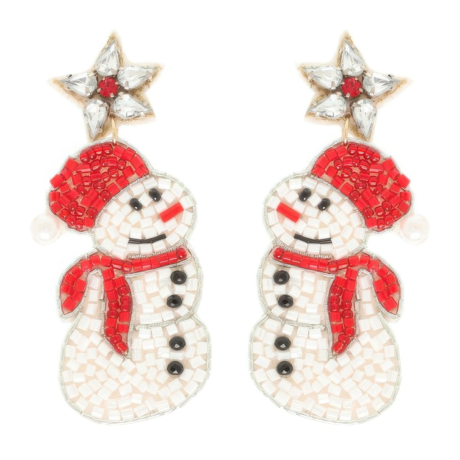 Bring a touch of winter whimsy to your accessories with these charming snowman post earrings, complete with a bright red scarf detail. Crafted with intricate seed bead embroidery, these festive earrings are a cheerful addition to any holiday look. Lightweight and easy to wear, they offer both comfort and sparkle for all-day festivities. Whether you're attending a Christmas party or looking for a thoughtful gift, these playful snowman earrings make a delightful seasonal statement. Fun, festive, and full of character, theyโre a holiday favorite.