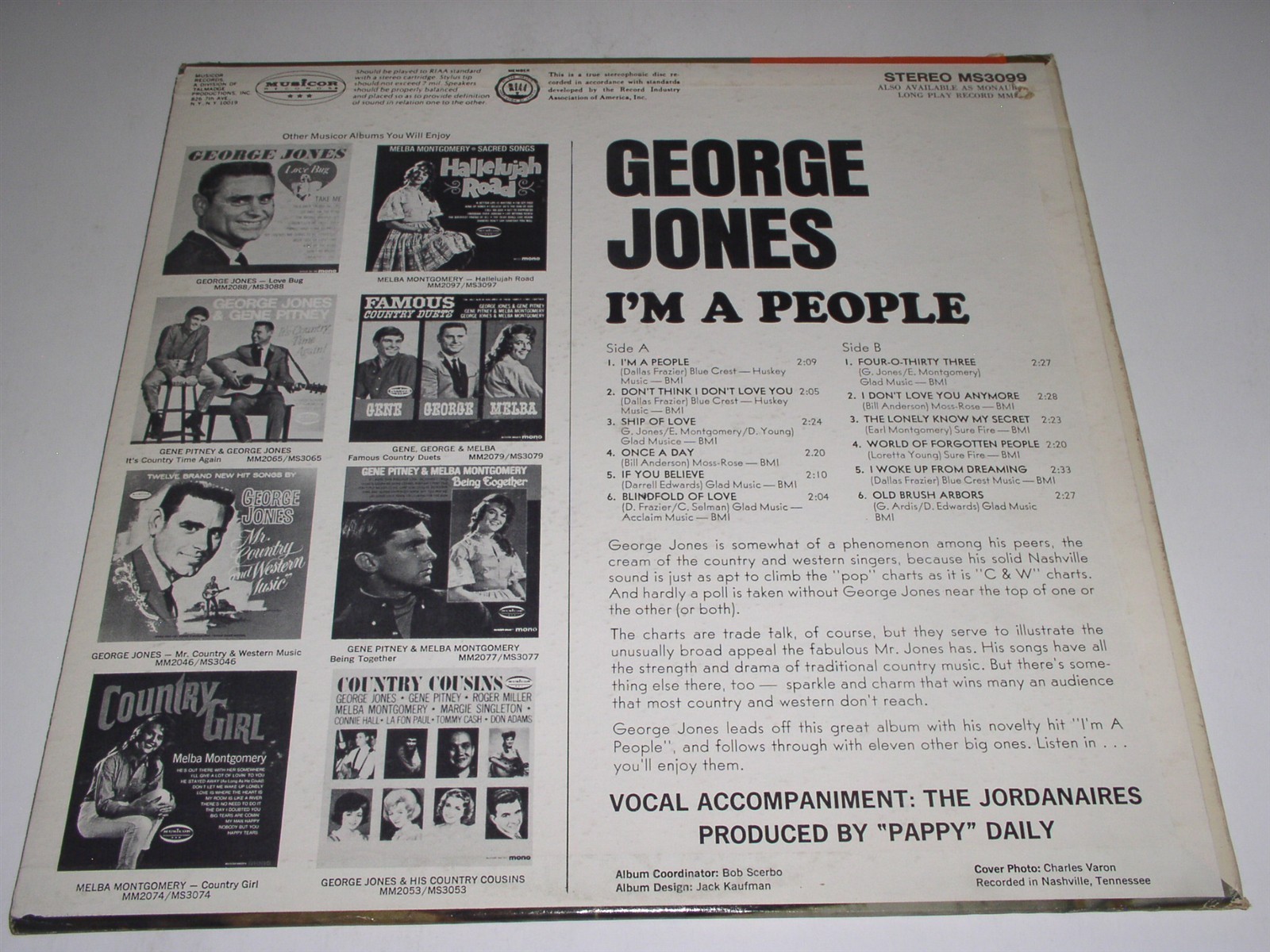 This is a vintage phonograph record album by George Jones, entitled, "I'm A People". Record label: Musicor MS3099 (Stereo).