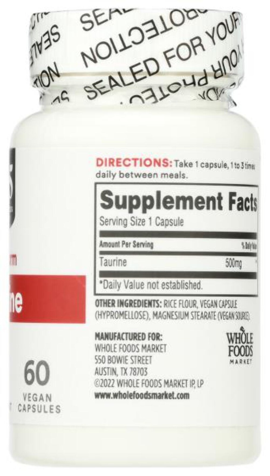 Expiration Date of 07/2027 ? 60 count taurine supplement ? 500mg per capsule ? Free-form amino acid ? Provides antioxidant support ? Free from artificial ingredients