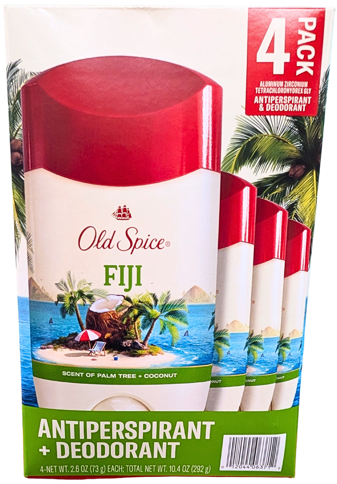 Old Spice Fiji Antiperspirant Deodorant Palm Tree + Coconut 4 x 2.6 Oz EXP 07/27