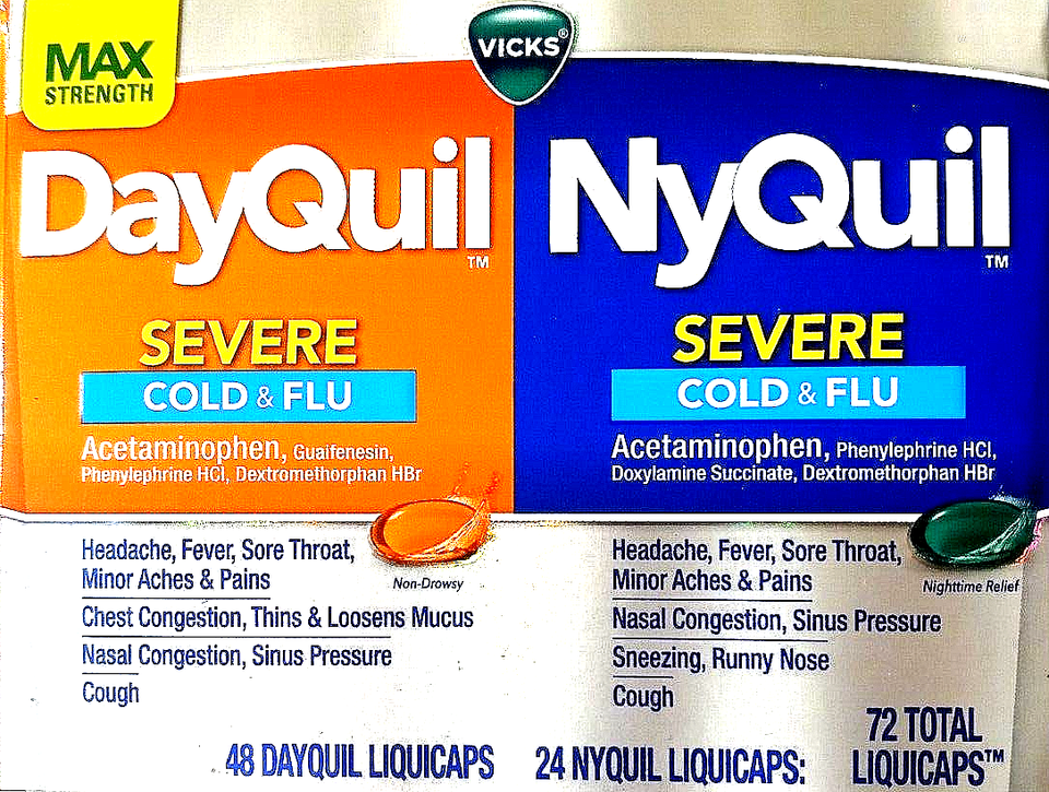 Vicks DayQuil & NyQuil Severe Cold & Flu 72 Liquid Capsules EXP 03/2026