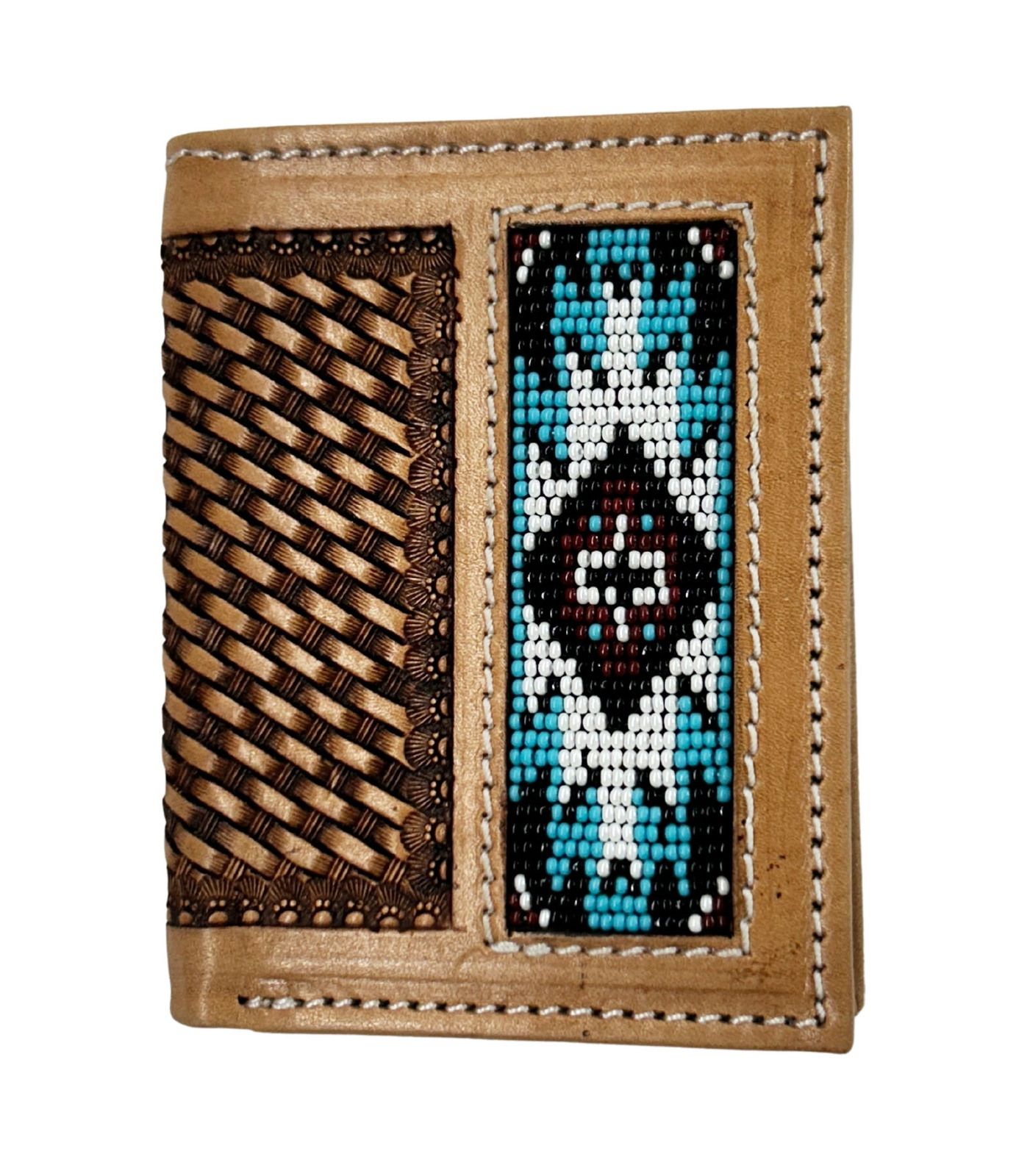 Men's Western Basket Weave Tooled Leather Beaded Bi-Fold Wallet 18RSW-Bifold
