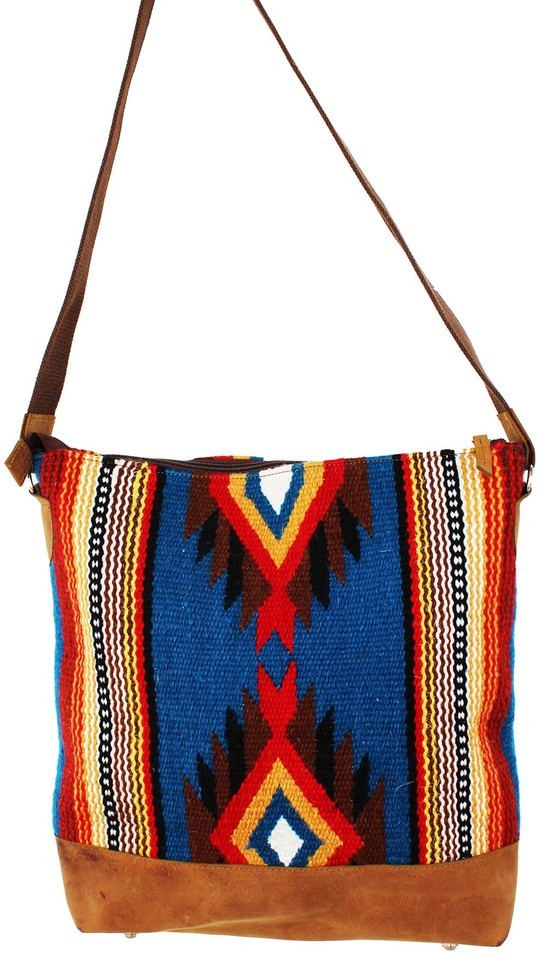 Challenger Women's handwoven wool western handbag with a double-sided Southwest pattern. These extraordinary crafted bags measure approximately 15" wide x 16" tall giving you plenty of room for all of your essentials. Full closure zipper at the top.