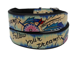 Hand-Painted Dreamcatcher Padded Leather Dog Collar 60FK37