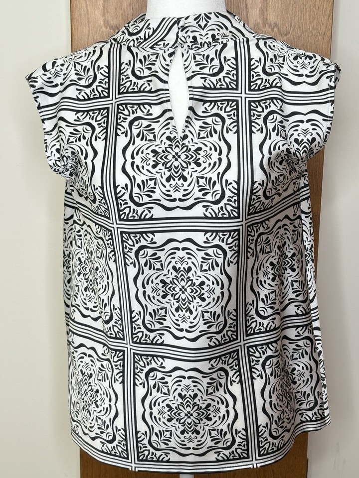 Loft XS Black & White Geometric Floral Cap Sleeve Mock Turtleneck Top Career