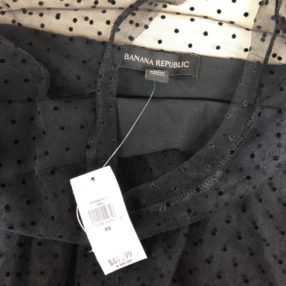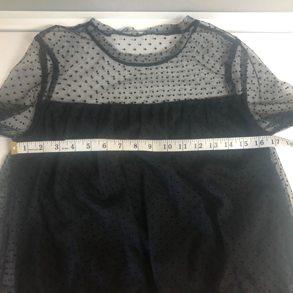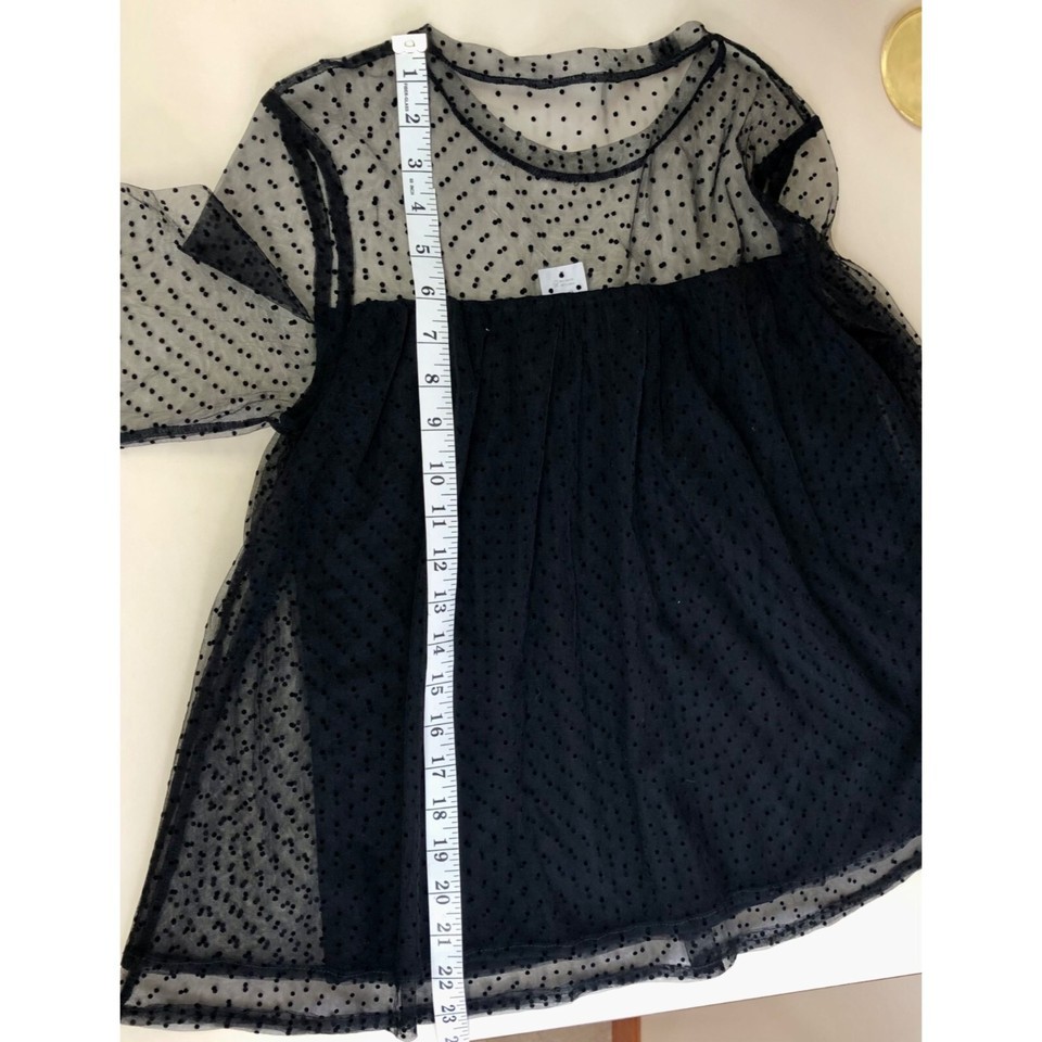 This NEW chic babydoll polka dot sheer top adds elegance to your wardrobe, ideal for layering or wearing solo. Perfectly tailored for XS, it exudes sophistication.